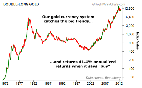 | Based on history, buying a double-long gold fund when this system says “buy” is good for 41.4% annualized returns.