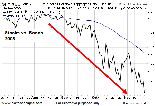 When fear started to subside in March 2009, equities started to outperform bonds, telling us the risk-reward profile of the general stock market was improving.