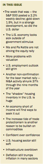 But don’t worry — Uncle Sam is coming back to the rescue. Congress is moving to extend emergency jobless benefits to over one million workers who are about to see their benefits expire by year-end. The House already approved on Tuesday a 15-week extension in states with unemployment rates of 8.5% or higher (oh — that only includes 27 states right now, by the way) and now Congress is looking at extending and expanding the homeownership tax credit. The short-term-ism in fiscal policymaking in terms of still trying to promote consumption and credit remains is fully intact and is actually quite sad because the U.S. boomer population is seriously short of savings needed to fund a boom in the retirement community over the next two decades. A Harvard University report shows that 60% of Americans do not have enough savings to fund their retirement. Why the government wants to resist the natural trend towards higher savings rates is … well, it’s unnatural. When your homeownership rate is over 67% and your consumption-to-GDP ratio is over 70%, you’re no exactly suffering from under-spending.