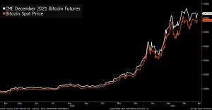 So for example, at the close of trading on Friday, Bitcoin spot was just over $58,300, whereas the December 2021 CME contract was over $63,000.