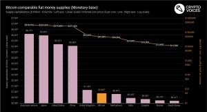 Bitcoiners are in a triumphant mood these days. The price is near all-time highs. Coinbase just went public. Institutional interest is growing. All the naysayers who mocked it over the last decade are humiliated and Having Fun Staying Poor. However in their drive towards victory, there is one recurring Bitcoin talking point that must be debunked. The claim that Bitcoin is now the 5th biggest currency in the world, even larger than the British pound. Here is a chart published by Crypto Voices from February, when it was still below $50K per coin and its total market cap was just under $900 billion, and it shows it knocking on the door of the British pound based on the total “monetary base” of the pound and other fiat currencies. Since the chart was published of course, Bitcoin has grown a lot more and would now be, theoretically, in 5th place.