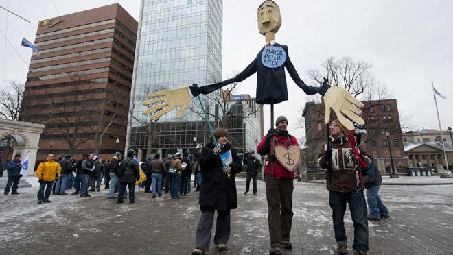 A solidarity rally in support of striking transit workers and water workers. The Halifax-Dartmouth & District Labour Council organized the event, which attracted members of the Nova Scotia Government & General Employees Union, the Canadian Union of Public Employees and about five other unions, as well as about five Occupy Nova Scotia protesters.
