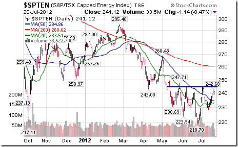 The second of two periods of seasonal strength in the energy sector is approaching. The average optimal time is from July 24th to October 3rd. Thackray’s 2012 Investor’s Guide notes that a trade in the S&P Energy Index has been profitable in 10 of the past 15 periods.
