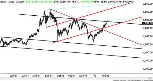 As you can see, gold is now pressing up against the top of a major cyclical trend channel, and it’s going to have a hard time getting through that resistance level.