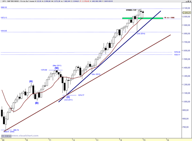 Although the long-term trend remains up we must be aware that weekly oscillators are not in agreement with the constructive price development. It stands out the RSI negative divergence in force since July 2014 and that the RSI trend line from the October low has been breached. If next week the MACD rolls down and issues a bearish cross the short-term outlook would be damaged.