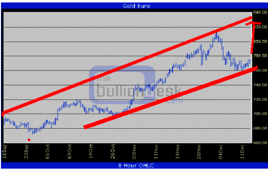 GOLD IN EUR TERMS: €760 Has Been Formidable Support: The trend is upward, from the lower left to the upper right, and owning gold in EUR terms has proven a far better trade… and far less volatile… than gold in US$ terms.