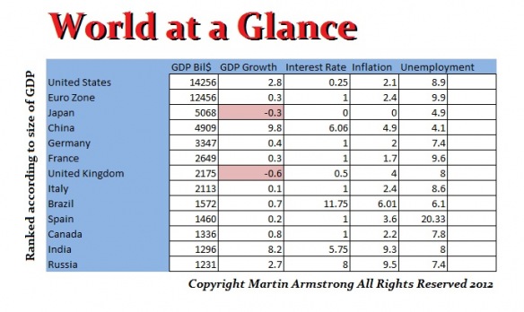 One of the primary mistakes that the Federal Reserve is making has been to follow the same policy of Japan with exceptionally low interest rates. While the theory that lower interest rates will stimulate borrowing, the false assumptions are many. (1) banks will pass on the savings, (2) they ignore the devastation imposed upon the retired community who have saved all their lives only to see fixed income collapse, and (3) interest rates must naturally compensate the lender for the loss in purchasing power created by inflation.(Ed Note: Martin on Gold Today)