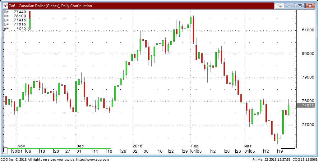 The Canadian Dollar tumbled >6.5% from the end of January to Monday’s lows. It had closed lower for 5 out of 7 weeks and hit a 9 month low. It just about registered a Weekly Key Reversal Up this week. I liquidated my short position on the NAFTA/auto news because the market had been very focused on Canada’s vulnerably to Trump’s protectionist bombast and any “let up” could trigger a rally in an oversold market. I was also puzzled by the bid in the crude oil market the last 2 weeks (in the face of stock market weakness) and I thought CAD could benefit from rising crude. The USD feels “heavy” ( the Yen is at its highest levels since Trump’s election) despite the HUGE American interest rate premium over other currencies and if the USD falls from here that would give CAD a lift. I maintain a bearish view on CAD…I’m just not short at the moment.
