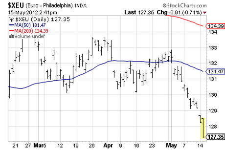 In the broader Euro Zone, statistics just released indicate that the region scraped by in Q1 with zero growth, avoiding a recession but only just. That is wholly due to a much stronger performance by Germany which posted 0.5% growth as opposed to the 0.1% consensus estimate. These figures will sharpen the debate between Germany and France. Newly elected President Francoise Hollande is demanding a “growth pact” that provide some new spending funded by EU institutions.